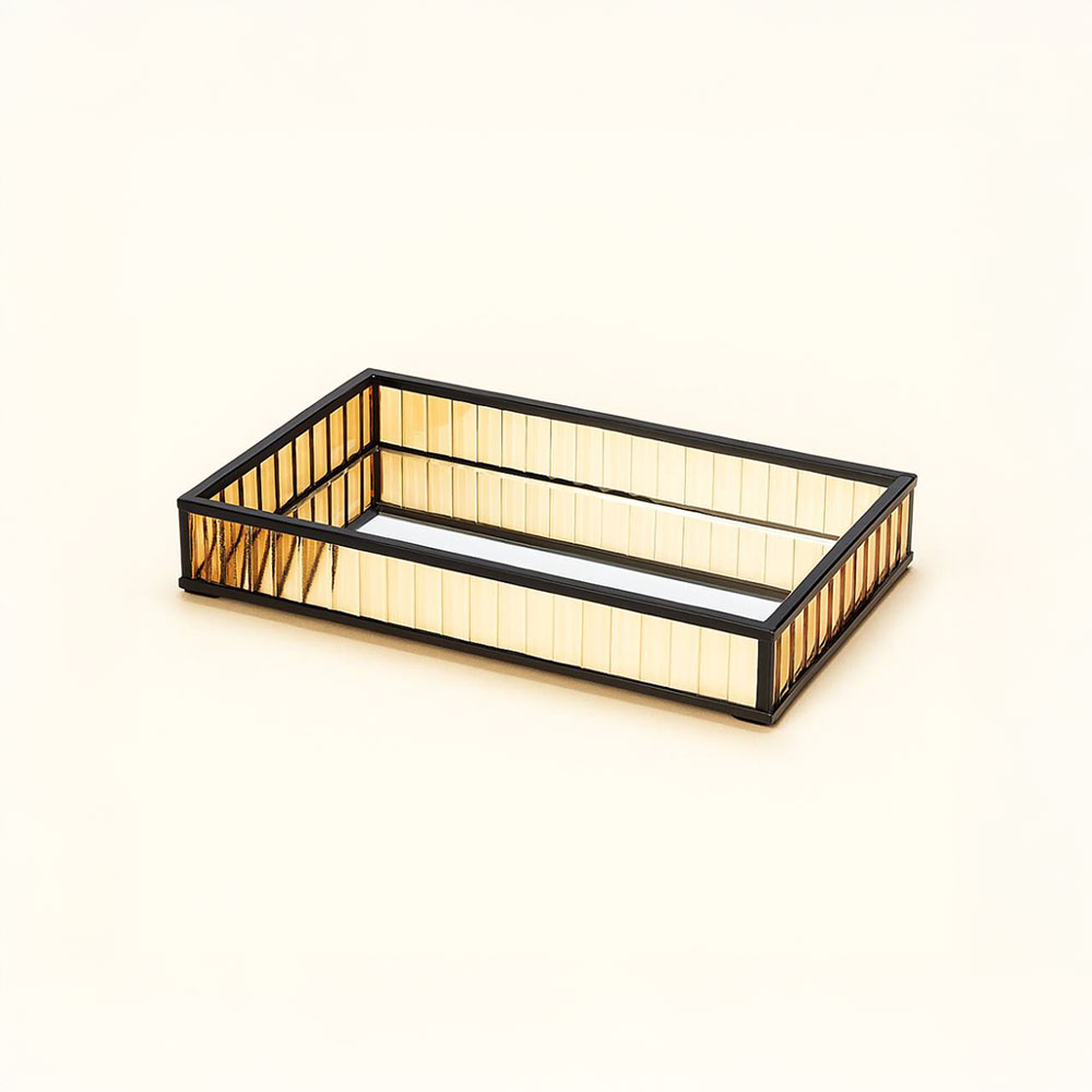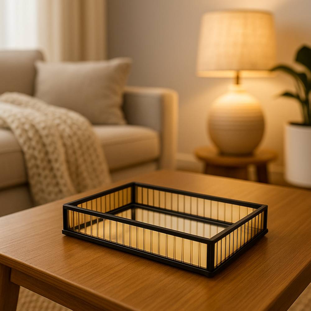 Victoria no es solo una bandeja, es una declaración de estilo. Su base de espejo refleja la luz y realza todo lo que coloques sobre ella, mientras que su marco negro y el delicado cristal biselado en dorado aportan ese toque de lujo discreto que enamora.