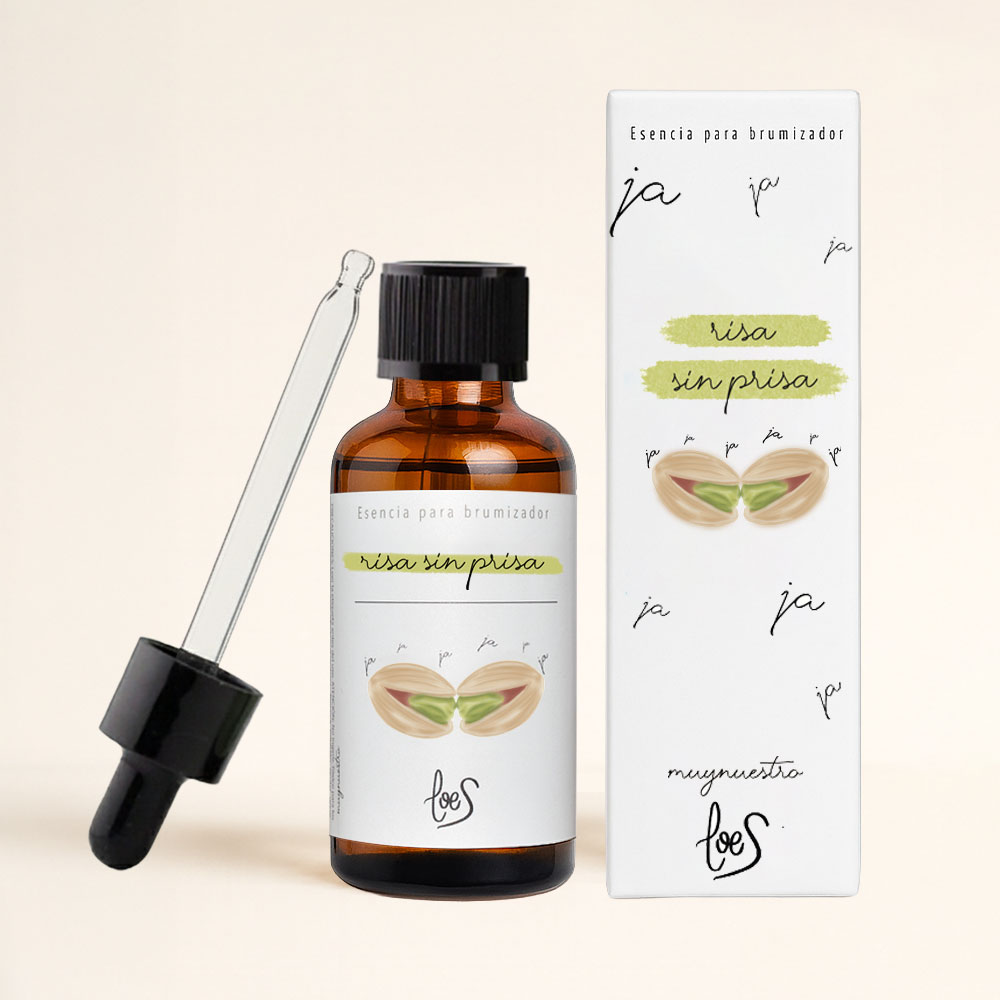 - Pon unas gotas de la esencia Risa sin prisa (empieza por 20 o 30y ajusta según la intensidad que te guste).