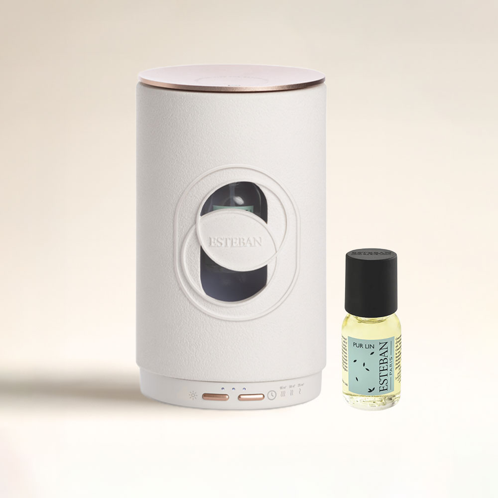 El Difusor de Aromas inalámbrico Édition Origine de Esteban París lo hace posible con su tecnología innovadora en seco. Solo tienes que enroscar el frasco de perfume y disfrutar de una bruma elegante y aromática en cuestión de minutos.