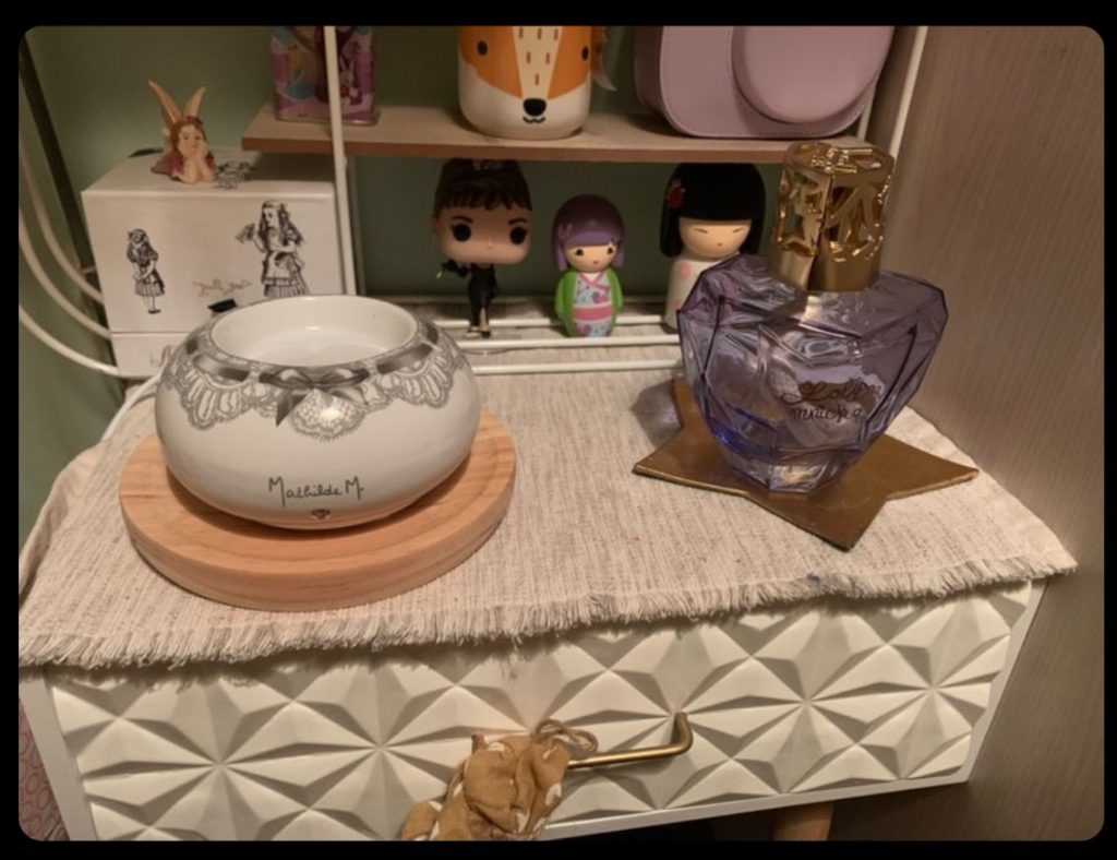Preciosa!!! La lámpara una joya y el aroma igual que el perfume. Personalmente es mi perfume desde muchos años y oler tu casa a ese mismo aroma para mi un placer.
