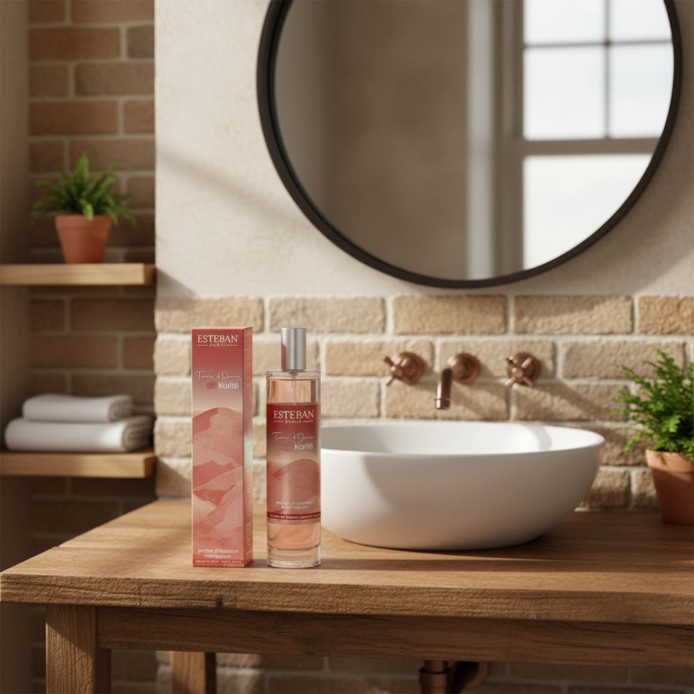 El Perfume de ambiente Terre d Ocre Karité de Esteban Paris captura la sensualidad del desierto con notas de cardamomo, karité y vainilla.