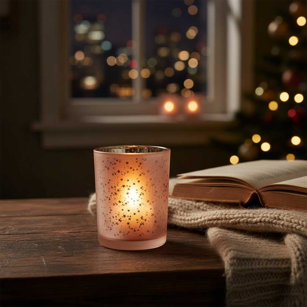 Ideal para decorar mesas, salones o dormitorios, su tono empolvado combina con estilos románticos, nórdicos o festivos. Es un detalle perfecto para regalar en Navidad o para acompañar esos momentos tranquilos que merecen un poco de brillo.
