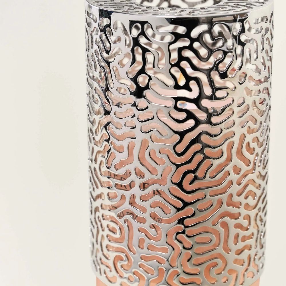 Una colección de velas añadida a la colección Maison Berger X Philippe Starck. Inspirado en el mundo del laboratorio, el célebre diseñador ha creado un portavelas en forma de tubo que contiene el recambio de vela. La tapa plateada de metal calado adorna delicadamente el objeto.