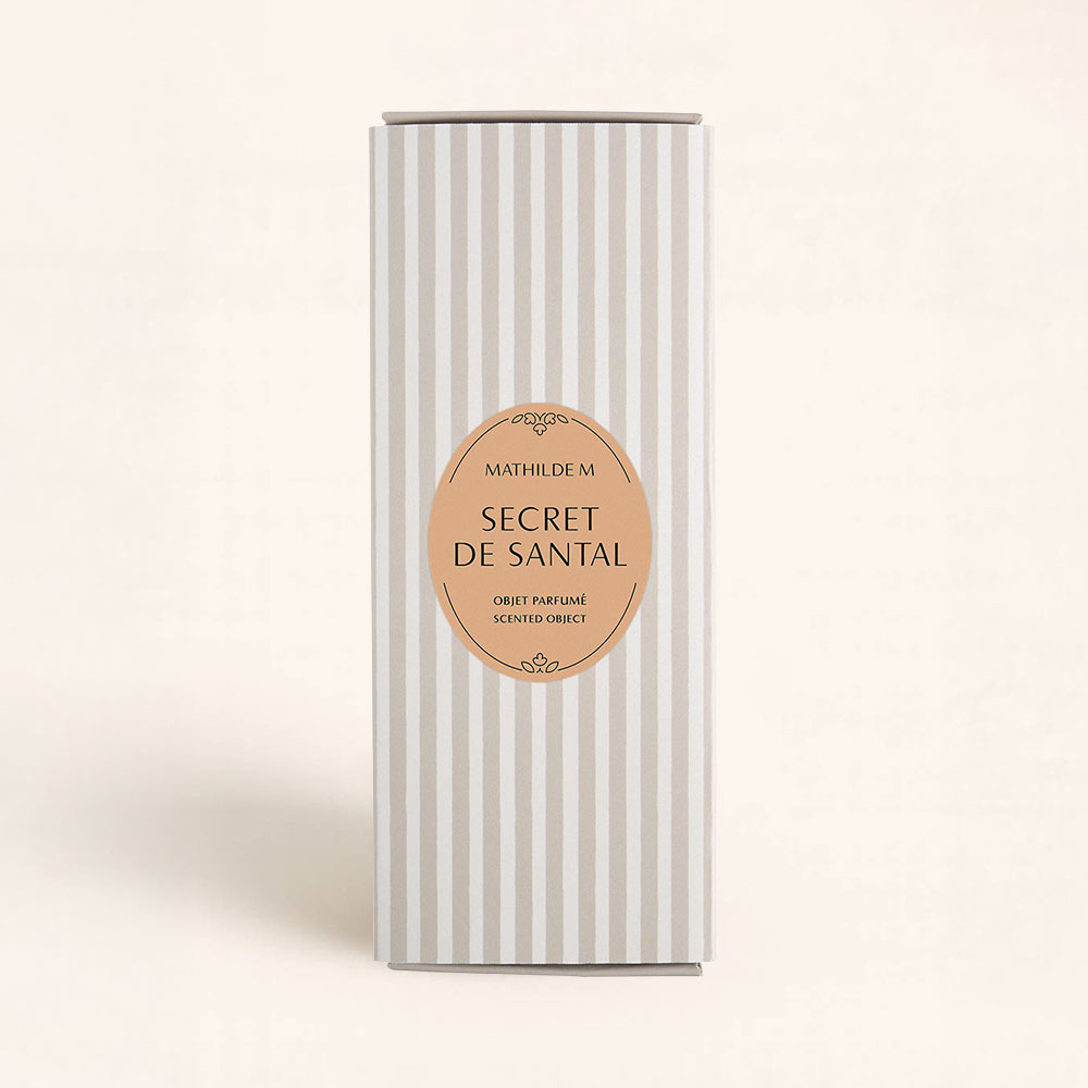 Secret de Santal es la fragancia más sofisticada de Mathilde M: notas de sándalo cremoso, jazmín y un fondo de vainilla y patchouli que envuelven tu casa en un perfume profundo, suave y absolutamente irresistible.