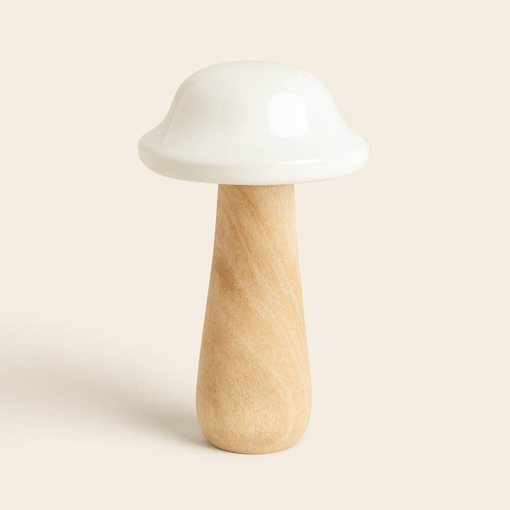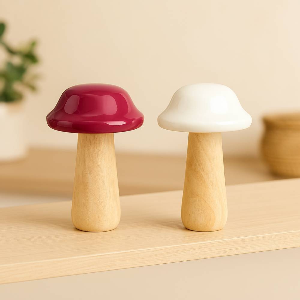 Pequeña pero llena de encanto, esta seta decorativa blanca es el detalle perfecto para dar un aire natural y acogedor a cualquier rincón. Su pie de madera maciza transmite calidez y autenticidad, mientras que el sombrero de cerámica en blanco puro aporta luminosidad y un toque elegante. Ideal para decorar estanterías, mesas auxiliares o rincones especiales, su diseño minimalista combina a la perfección con estilos nórdicos, rústicos o contemporáneos. Una pieza que parece salida de un bosque encantado para traer serenidad y belleza a tu hogar.