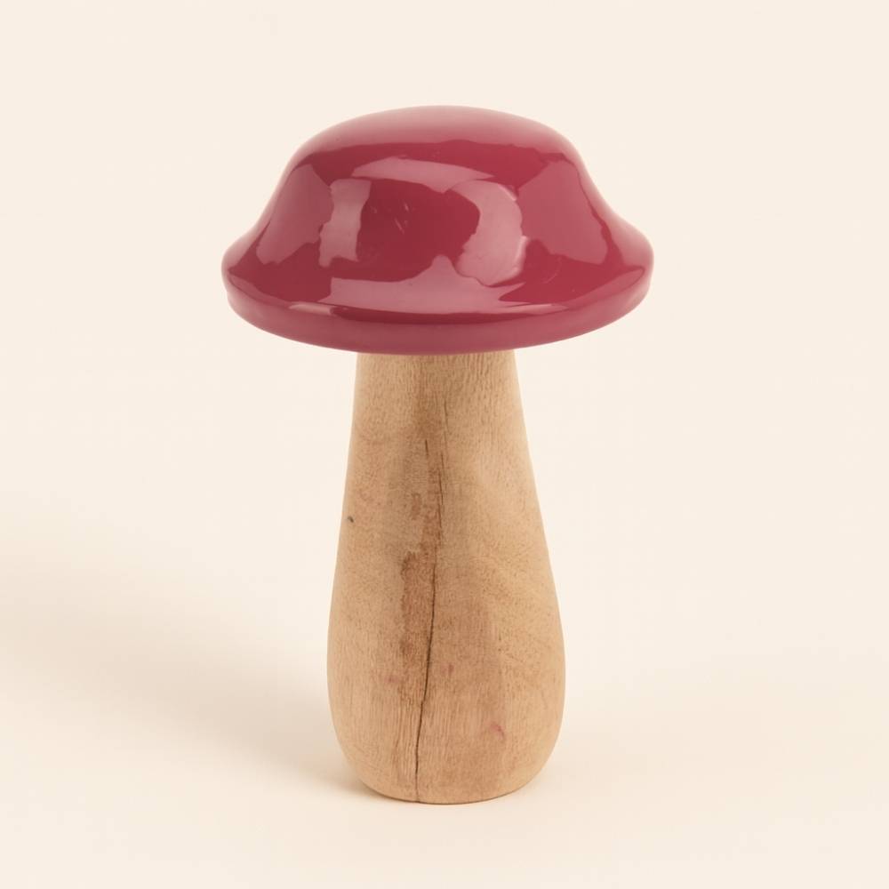 Esta Seta Decorativa Roja Pequeña (9x15cm) te va a cautivar. La combinación de madera natural y cerámica roja crea un contraste irresistible.