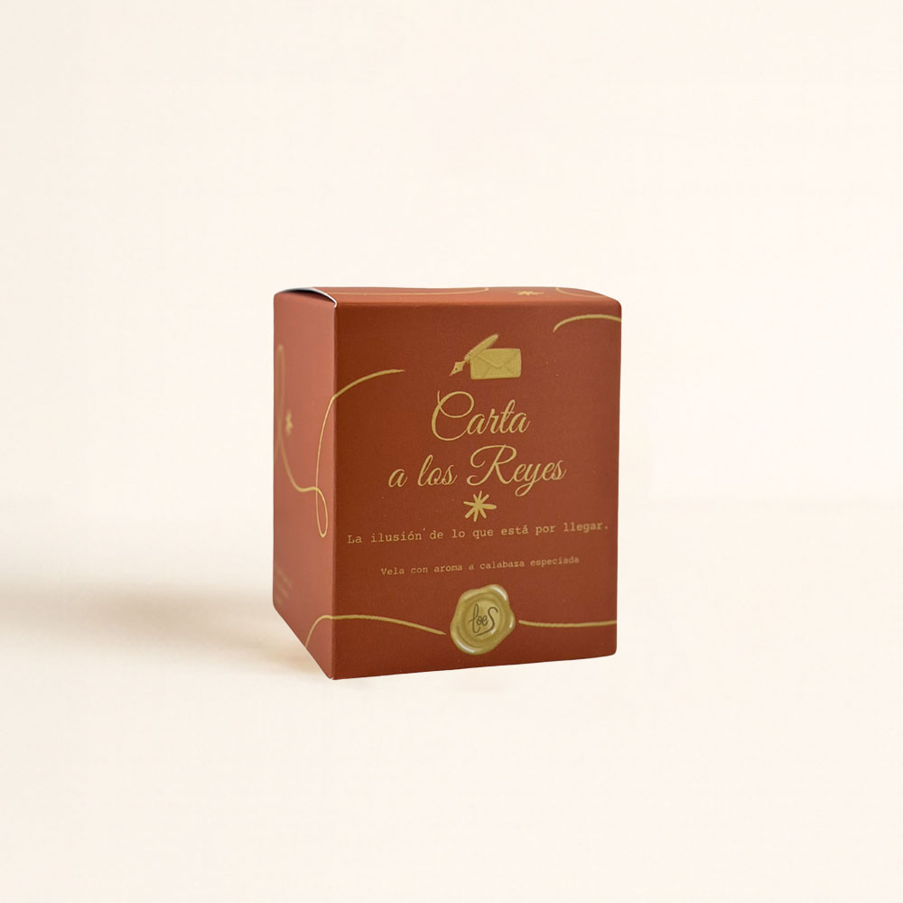 La Vela decorativa Carta a los Reyes cuadrada es ese aroma que te devuelve a la niñez sin pedir permiso.