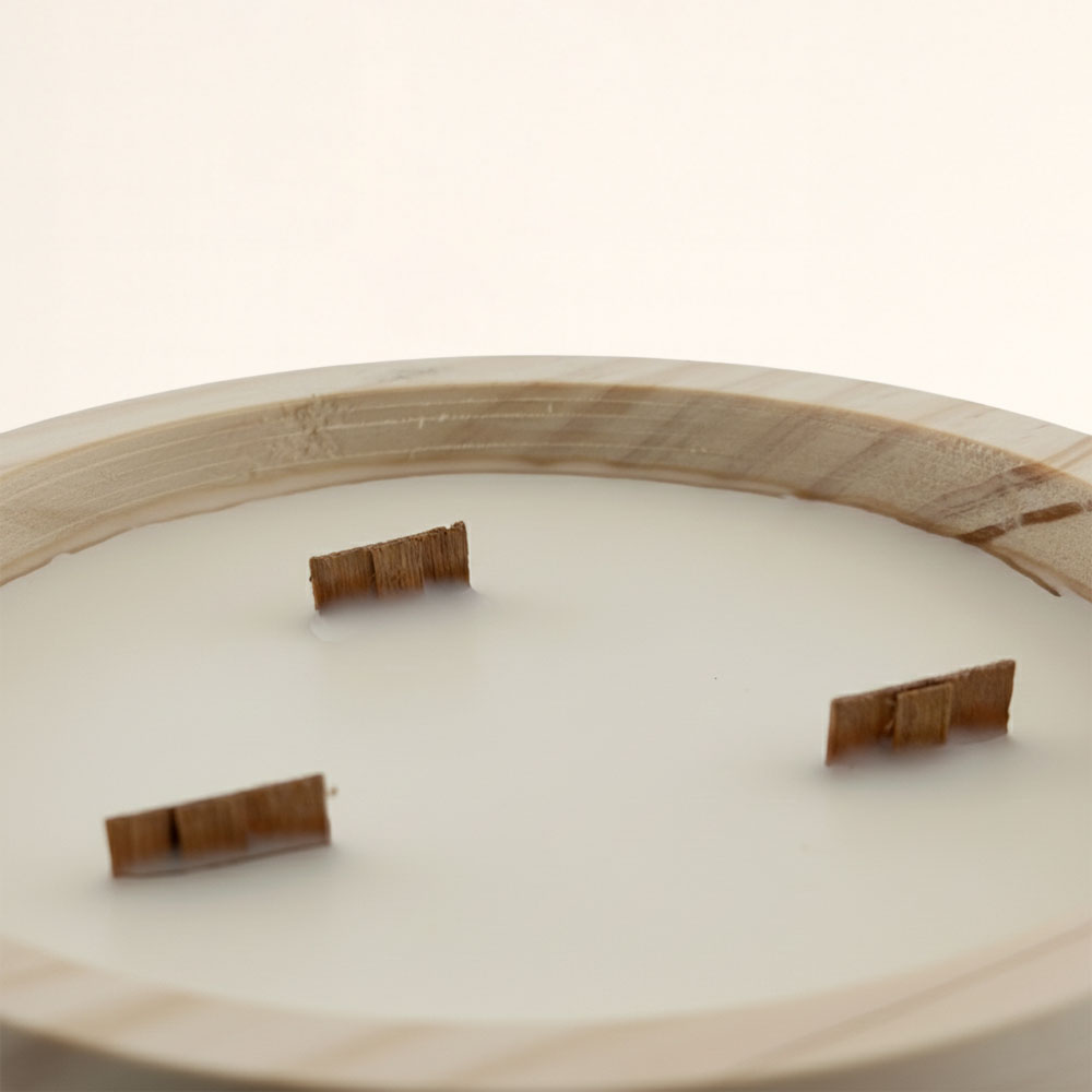 Vela decorativa Mantel Puesto en la Mesa redonda con 3 mechas de madera crepitantes: